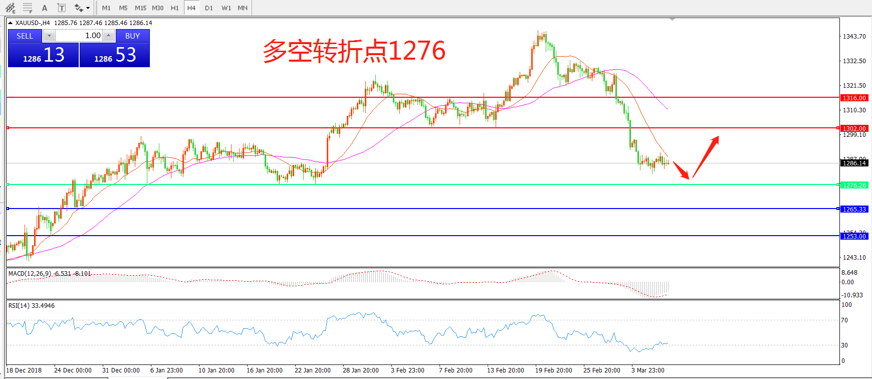 多空转折点:1276.00