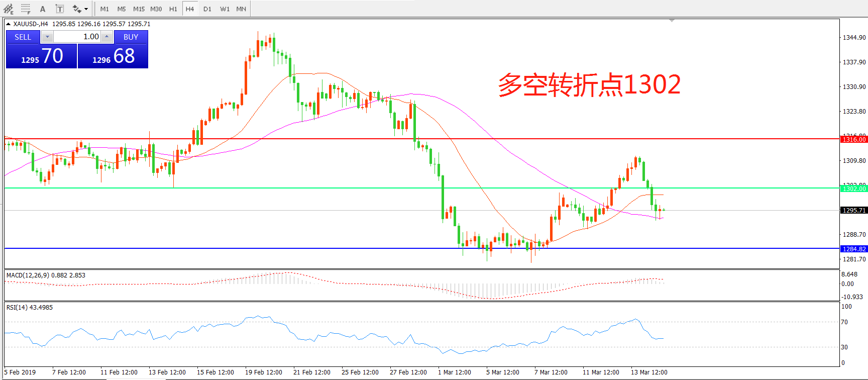 交易策略:在1302.00之下看跌,目标1285.00    1276.00