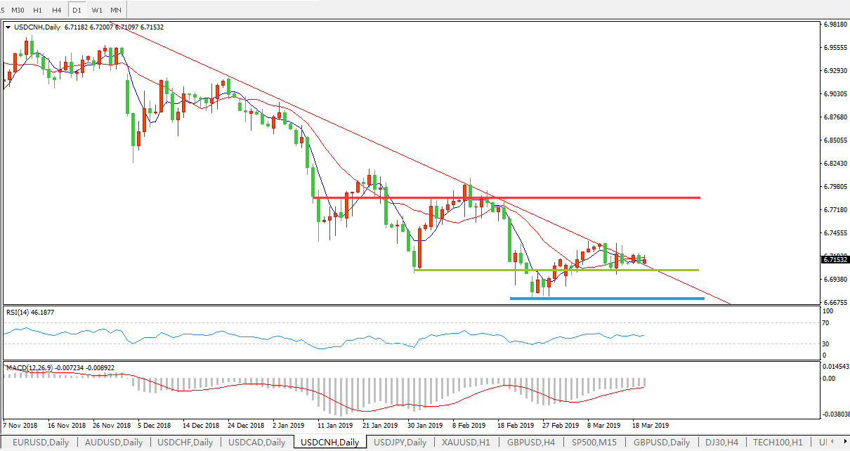 美元兑人民币USDCNH 日线图: