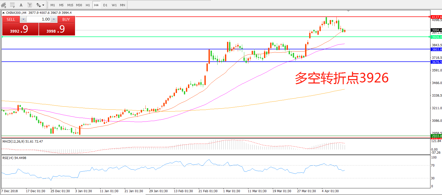 多空转折点:3926.00