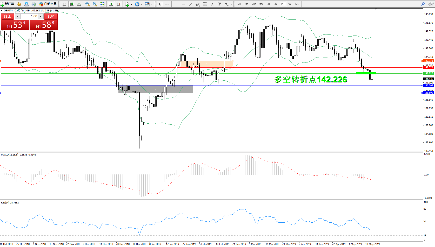 交易策略:142.226下方看跌,目标140.706139.800