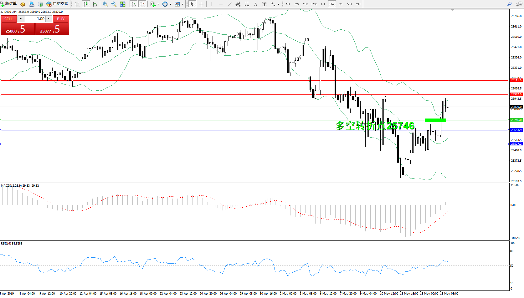 交易策略:25746上方看涨,目标25982、26111
