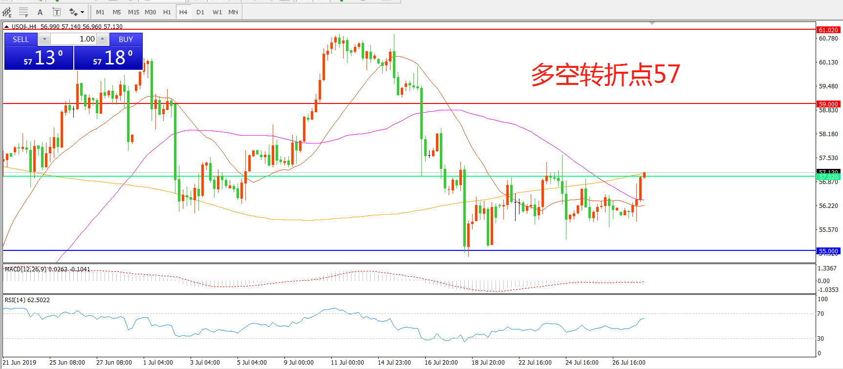 交易策略:在57.00之上看涨,目标59.00 61.00