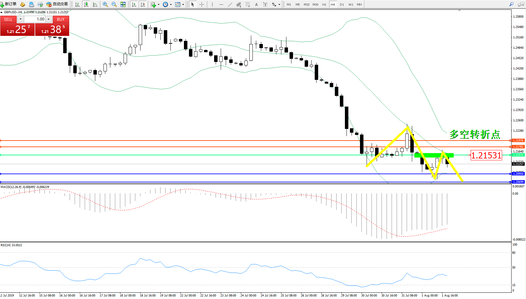 交易策略:1.21531下方看跌,目标1.209501.20699