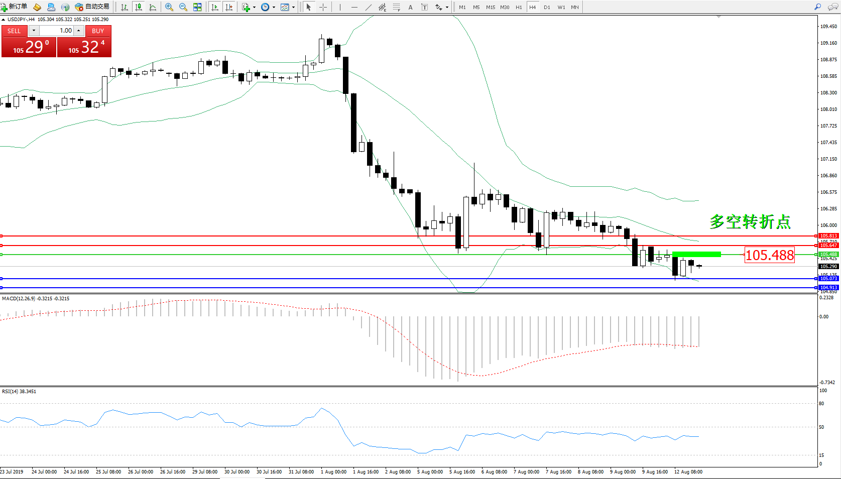 备选策略:105.488上方看涨,目标105.647、105.813