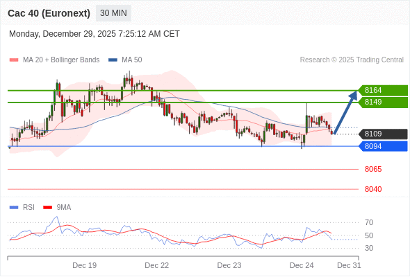交易策略: 在 8094 之上,看涨,目标价位为 8149 ,然后为 8164 。