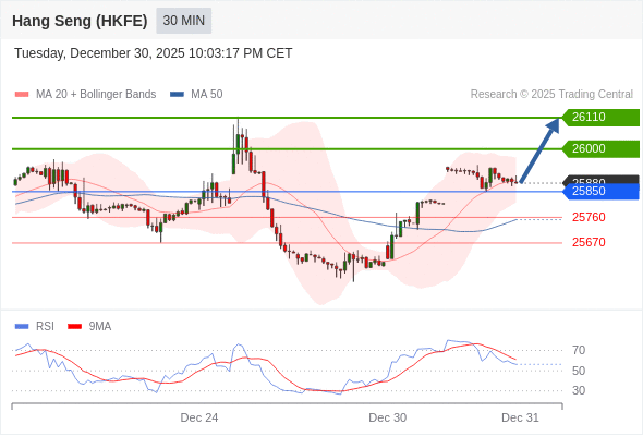 在 25850 之上,看涨,目标价位为 26000 ,然后为 26150 。