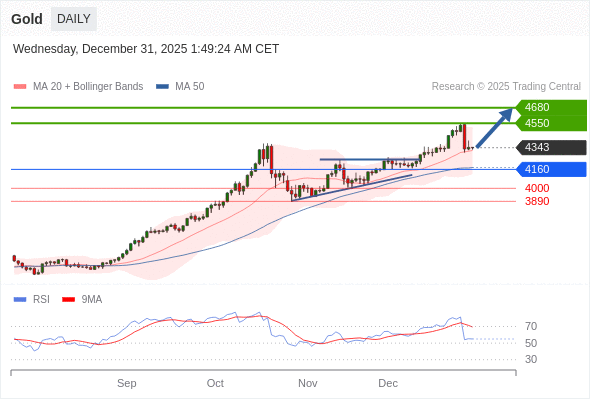 在 4160 之上,看涨,目标价位为 4550 ,然后为 4680 。