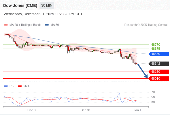 交易策略: 在 48560 之下,看跌,目标价位为 48160 ,然后为 48010 。