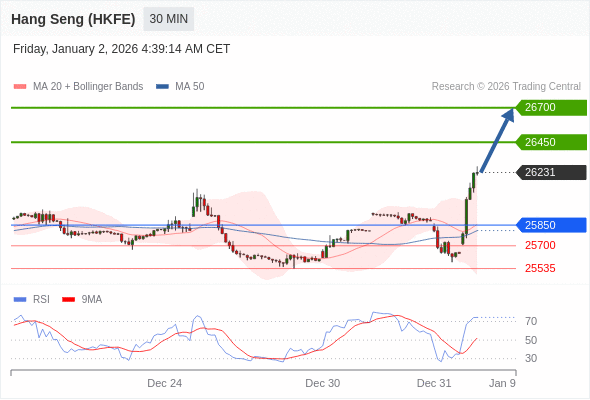 在 25850 之上,看涨,目标价位为 26450 ,然后为 26700 。