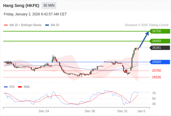 在 25920 之上,看涨,目标价位为 26450 ,然后为 26700 。