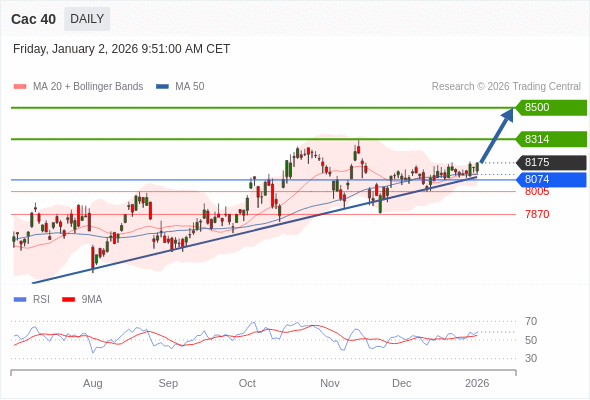Cac 40 短线: 目标位为8314。