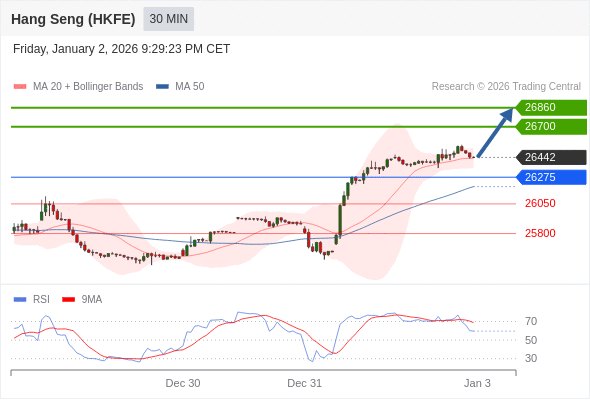 在 26275 之上,看涨,目标价位为 26700 ,然后为 26860 。