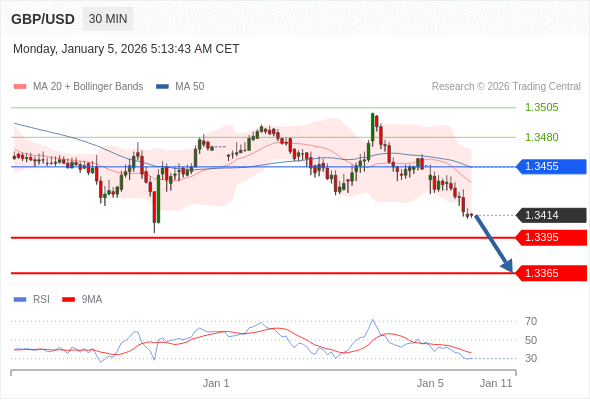 在 1.3455 之下,看跌,目标价位为 1.3395 ,然后为 1.3365 。