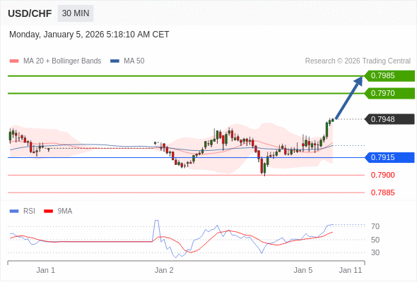 在 0.7915 之上,看涨,目标价位为 0.7970 ,然后为 0.7985 。