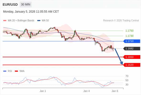 在 1.1710 之下,看跌,目标价位为 1.1640 ,然后为 1.1620 。