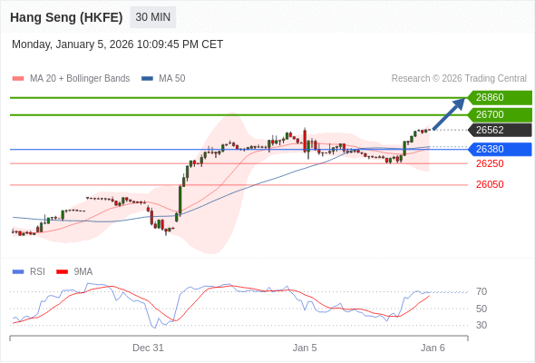 在 26380 之上,看涨,目标价位为 26700 ,然后为 26860 。