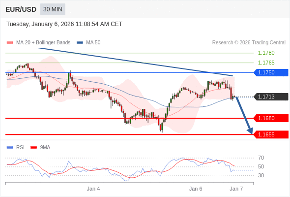 交易策略: 在 1.1750 之下,看跌,目标价位为 1.1680 ,然后为 1.1655 。