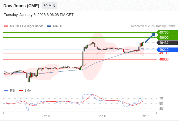 在 49210 之上,看涨,目标价位为 49600 ,然后为 49760 。
