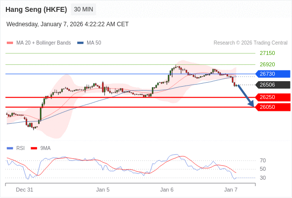 在 26730 之下,看跌,目标价位为 26250 ,然后为 26050 。