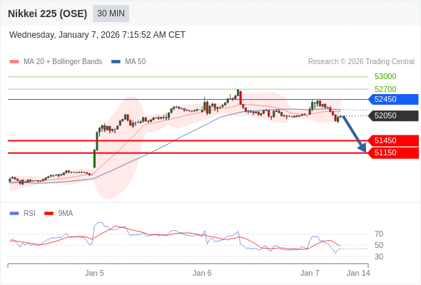 在 52450 之下,看跌,目标价位为 51450 ,然后为 51150 。