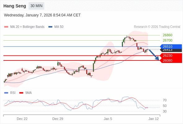 在 26510 之下,看跌,目标价位为 26230 ,然后为 26080 。