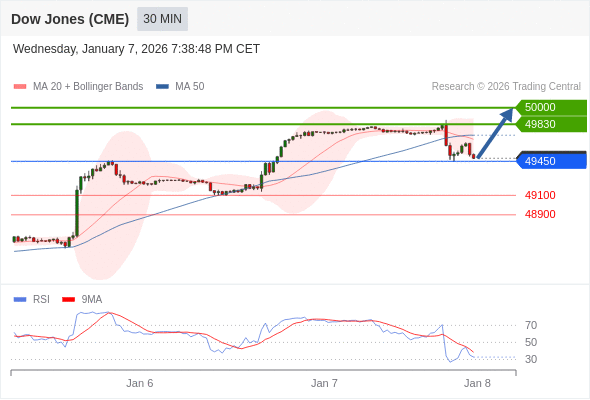 在 49450 之上,看涨,目标价位为 49830 ,然后为 50000 。