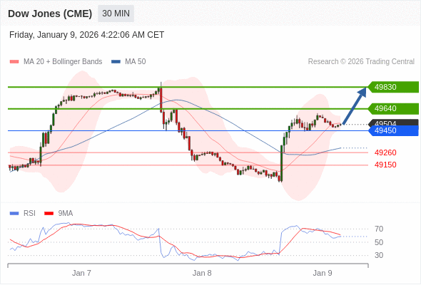 在 49450 之上,看涨,目标价位为 49640 ,然后为 49830 。