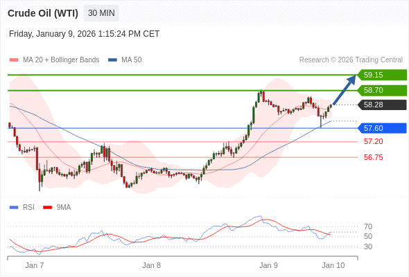 在 57.60 之上,看涨,目标价位为 58.70 ,然后为 59.15 。