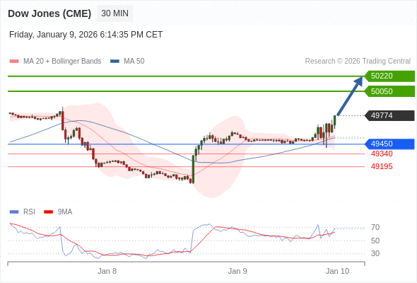 在 49450 之上,看涨,目标价位为 50050 ,然后为 50220 。