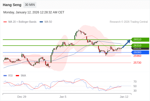 在 26080 之上,看涨,目标价位为 26310 ,然后为 26510 。