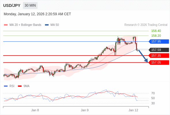 交易策略: 在 157.95 之下,看跌,目标价位为 157.35 ,然后为 157.05 。
