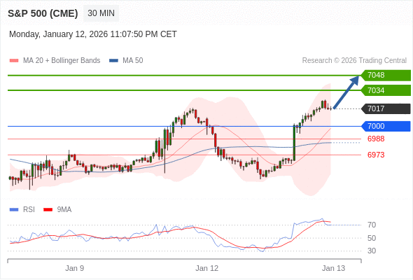在 7000 之上,看涨,目标价位为 7034 ,然后为 7048 。