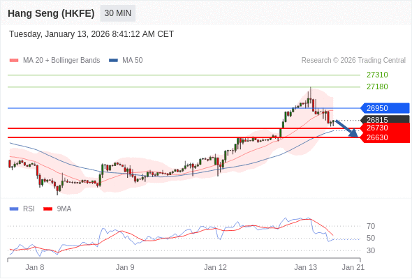 在 26950 之下,看跌,目标价位为 26730 ,然后为 26630 。