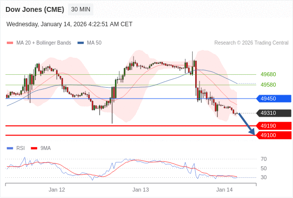 在 49450 之下,看跌,目标价位为 49190 ,然后为 49100 。
