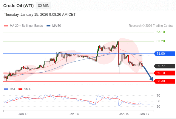 在 61.00 之下,看跌,目标价位为 59.10 ,然后为 58.30 。