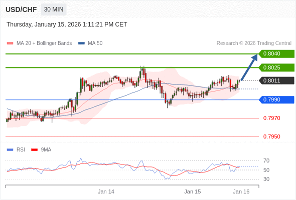 在 0.7990 之上,看涨,目标价位为 0.8025 ,然后为 0.8040 。