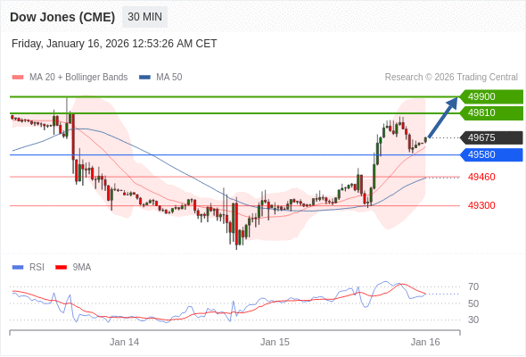 在 49580 之上,看涨,目标价位为 49810 ,然后为 49900 。