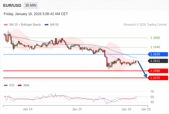 交易策略: 在 1.1625 之下,看跌,目标价位为 1.1590 ,然后为 1.1575 。