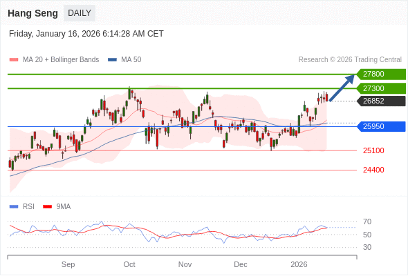 恒生指数 短线: 在25950之上,看涨。