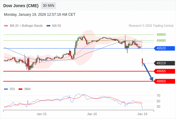 在 49520 之下,看跌,目标价位为 49055 ,然后为 48850 。