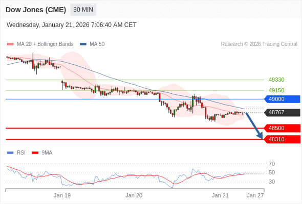 在 49000 之下,看跌,目标价位为 48500 ,然后为 48310 。