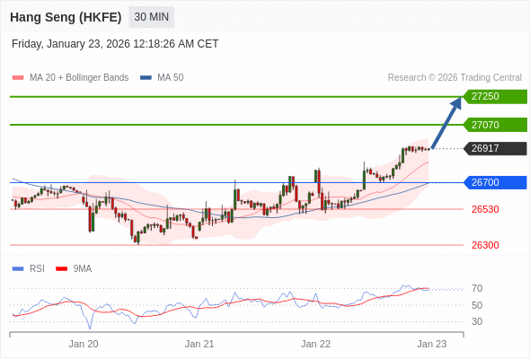 在 26700 之上,看涨,目标价位为 27070 ,然后为 27250 。