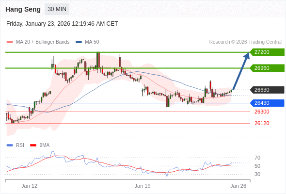 在 26430 之上,看涨,目标价位为 26960 ,然后为 27200 。
