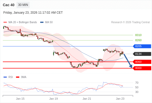 Cac 40 当日内: 存在压力。