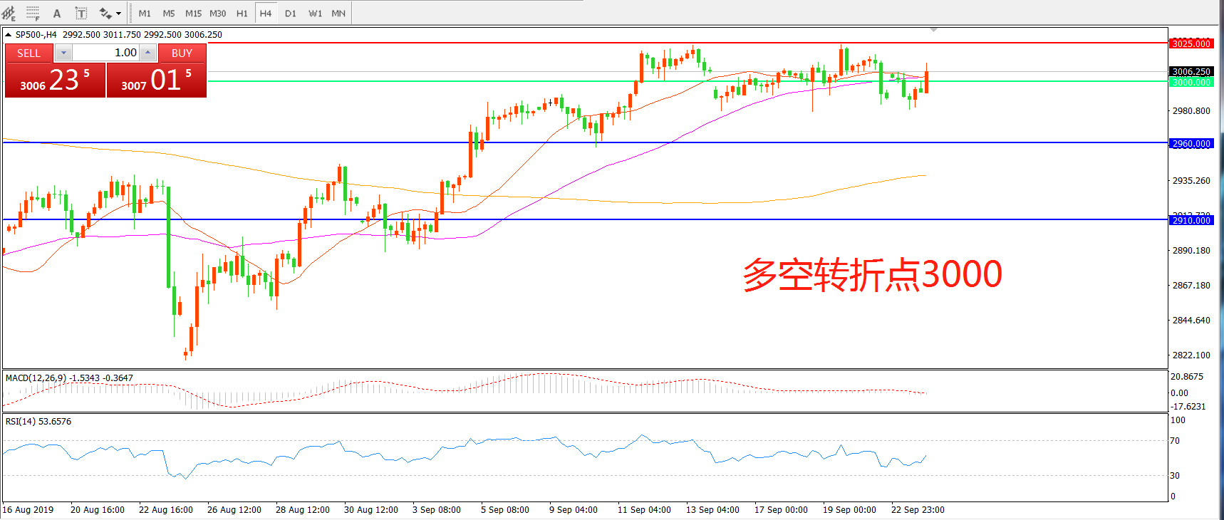 多空转折点:3000.00