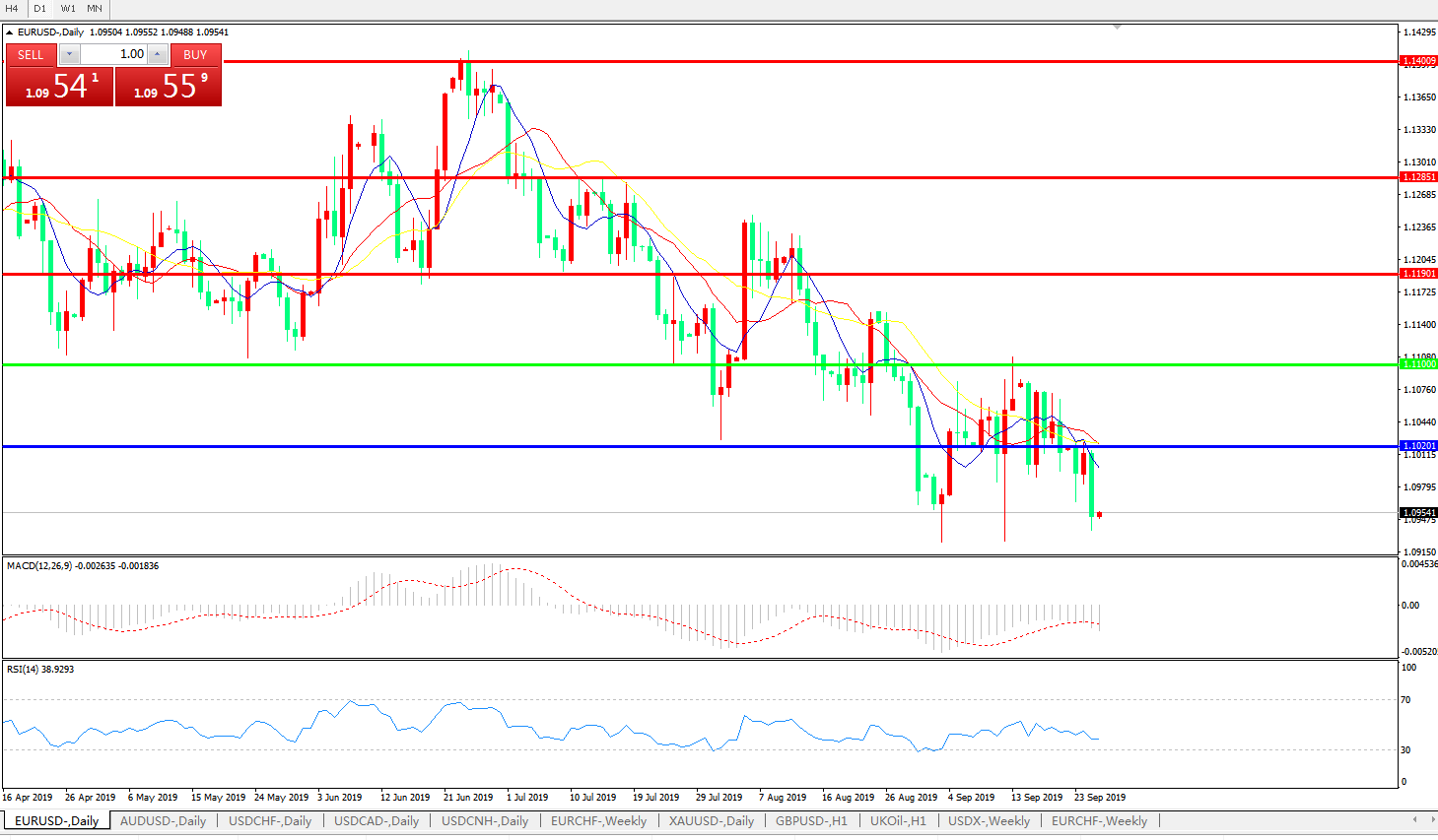 欧元兑美元在周三亚洲时段起重新陷入下行节奏,回吐了隔夜的涨幅,再度失守1.10关口。市场对于以德国为首的欧洲经济体增长前景的顾虑仍在发酵,这盖过了美国政治风波的影响;隔夜,在美国方面再度总统特朗普卷入政治丑闻,可能面临弹劾的消息后,美元指数自高位回落,带动欧系货币反弹,但在周三日内,市场关注焦点再度转向欧洲方面。英国议会日内复会后的脱欧走向不确定性,连同欧元区自身的经济低迷表现,都对欧元汇价构成利空;市场正提前开始关注此后欧洲央行官员的讲话,在本周德国PMI数据降至多年低位后,欧洲央行在领导层更迭之后延续强力宽松似乎已经在所难免,而大家也希望从官员的讲话中得到更多此方面的线索。