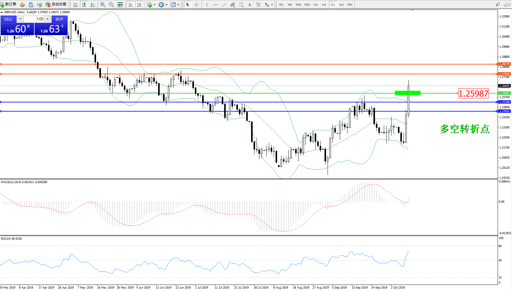 交易策略:1.25987上方看涨,目标1.275061.28278
