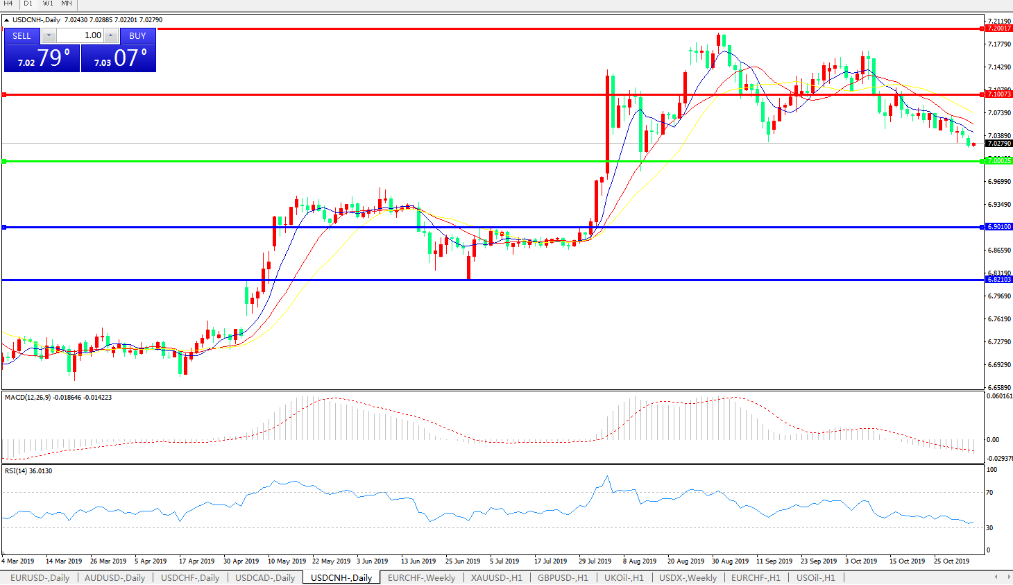 交易策略: 在7.0000之上,看涨,目标价位为7.1000,然后为7.2000。