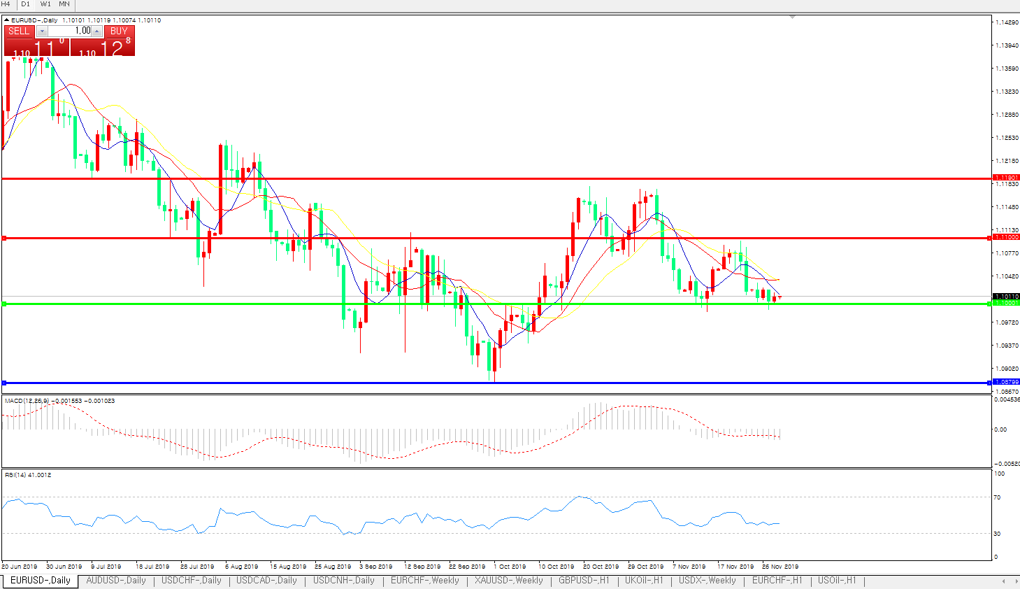 交易策略:1.1000上方看涨,目标1.1100、1.1190